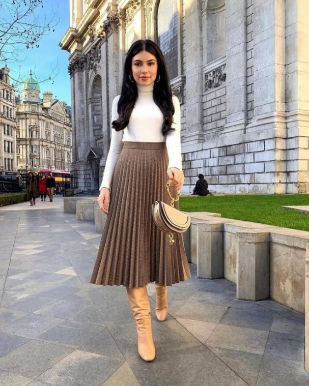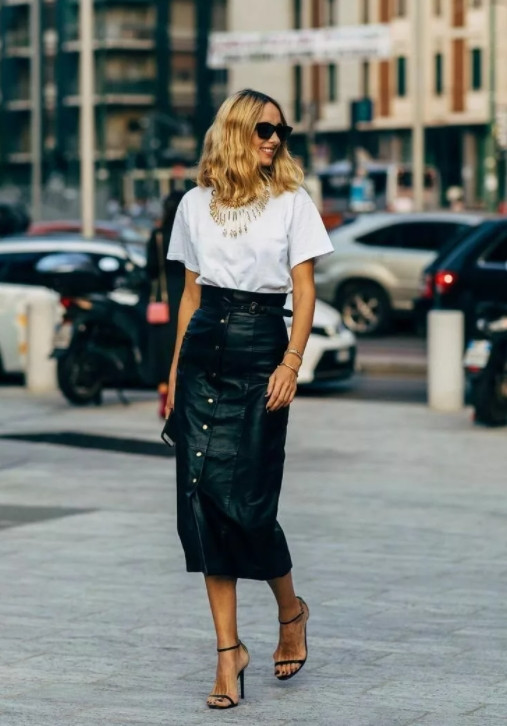 Элегантно будут выглядеть леди в юбках длиной ниже колен. Карандаш, расклешенная, джинсовая и кожаная, А-силуэта и многие другие фасоны подчеркнут строгость образа и прекрасный эстетический вкус женщины.