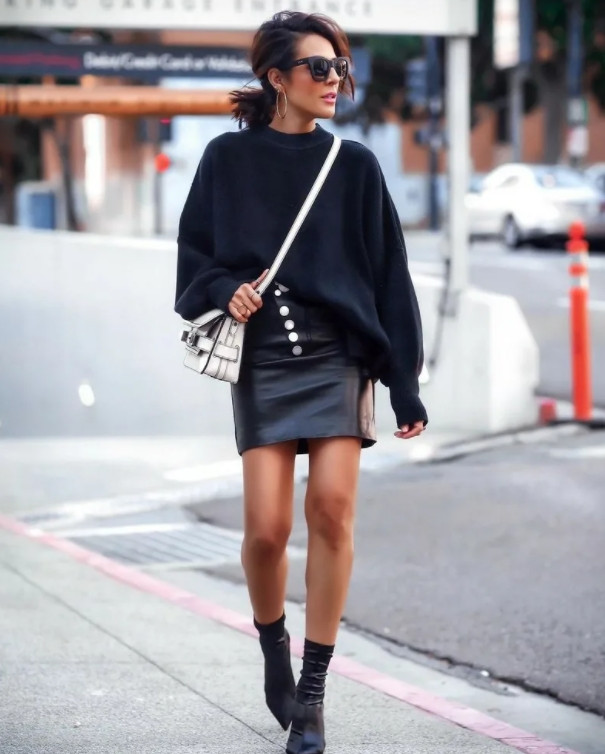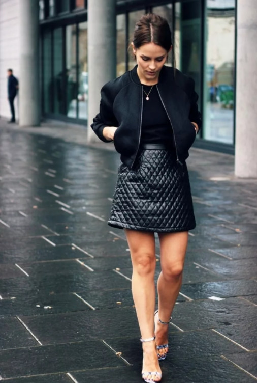 - Кожаная. Натуральная кожа — универсальный материал, и она снова в моде. Популярность кожаные юбки заслужили благодаря уникальной фактуре и износостойкости. Нет особой разницы, какой длины будет ваш предмет гардероба, главное — чтобы он вам подходил и хорошо сочетался с другими видами одежды. Дизайнеры акцентируют внимание на том, что цвет юбки необязательно должен быть черным. К новому сезону стилисты порадовали цветными вариантами — розовым, кремовым, голубым, зеленым, коричневым. Шикарно смотрится одежда из натуральной кожи с металлическим налетом и имитацией кожи рептилий. Кожаную юбку могут украшать присобранная талия, разрезы, молнии, накладные карманы, оборки, застежки.
