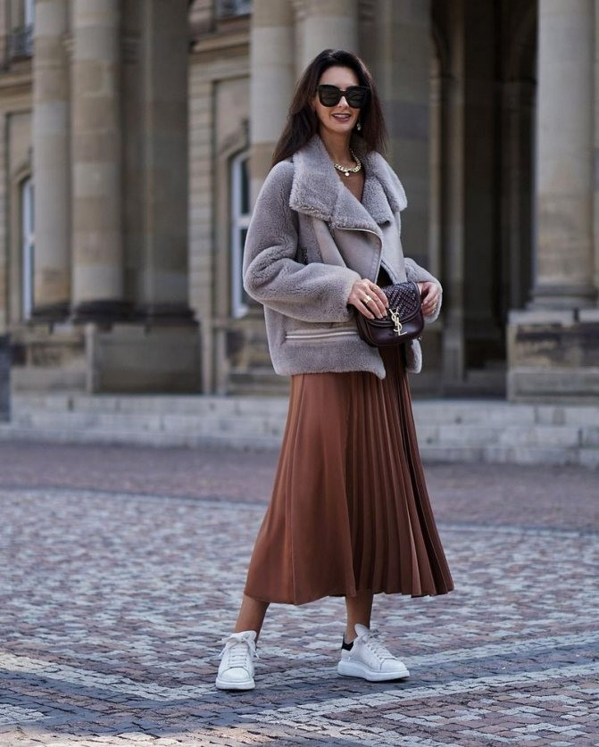 - Плиссировка дарит воздушность и легкость стильному образу. Весна и лето — лучшая пора для испытания нового тренда. Струящиеся ткани светлых пастельных оттенков будут уместно смотреться в юбках плиссе. Их длина может быть разной, но самая востребованная — чуть ниже колена. Обладательницы стройных ножек на лето выбирают короткие плиссированные юбки белого цвета. Они прекрасно сочетаются с белоснежными кроссовками. На осень можно обратить свое внимание на юбки из кожи. В прохладное время года юбки мини уходят на задний план, уступая место более длинным моделям. На подиумах в коллекциях модельеров можно видеть длинные юбки в широкую складку со вставками разных цветов.