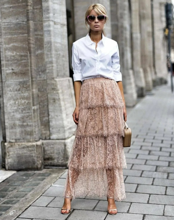 Юбки в пол смотрятся экстравагантно. Абсолютно не значит, что длинная юбка макси — это скучно. Наоборот, можно позволить себе почувствовать женственность в струящихся, многослойных предметах гардероба. Относительно цвета и выбора ткани — вам все карты в руки.