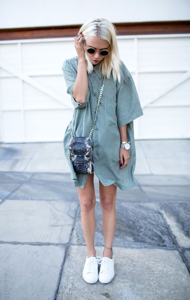 Идеальную для этого платья длину можно посмотреть на фото. В 2022 году оверсайз останется в трендах сезона, поэтому отказываться от него раньше времени не стоит. Однако необходимо следить, с чем сочетается такая рубашка в образе.