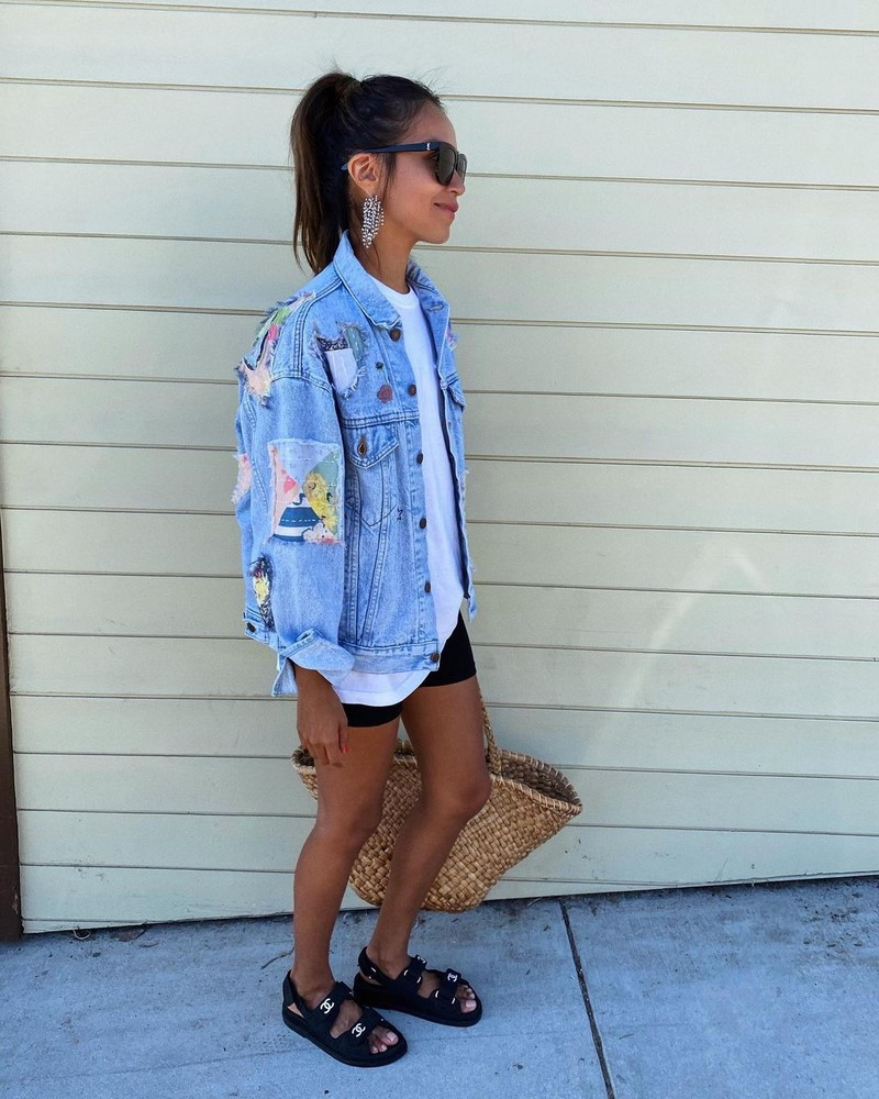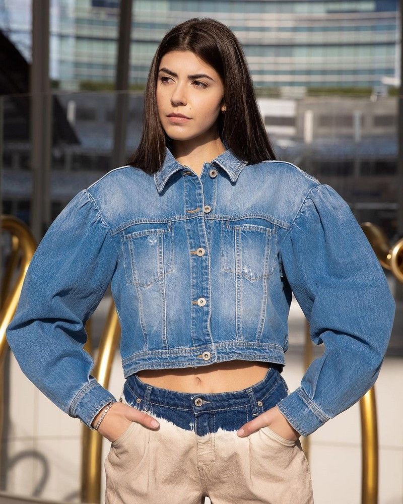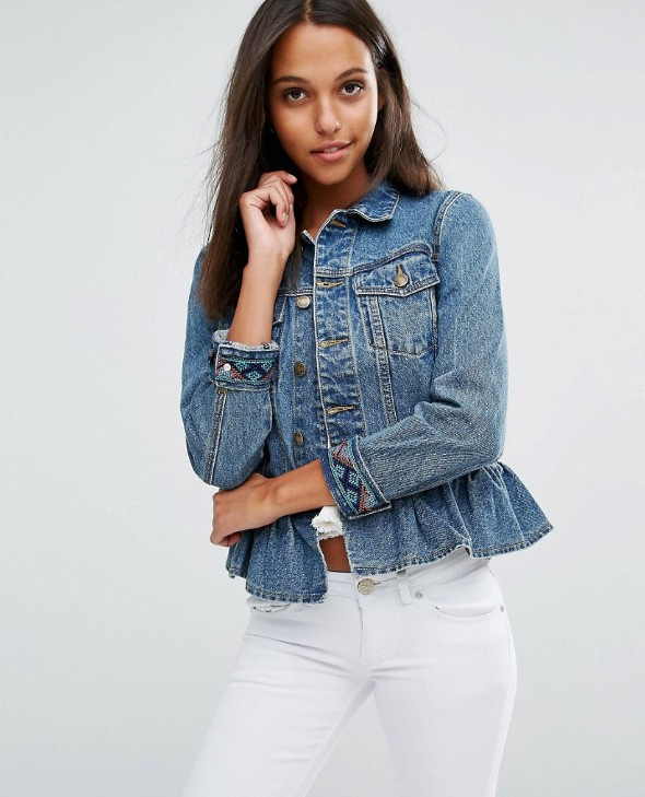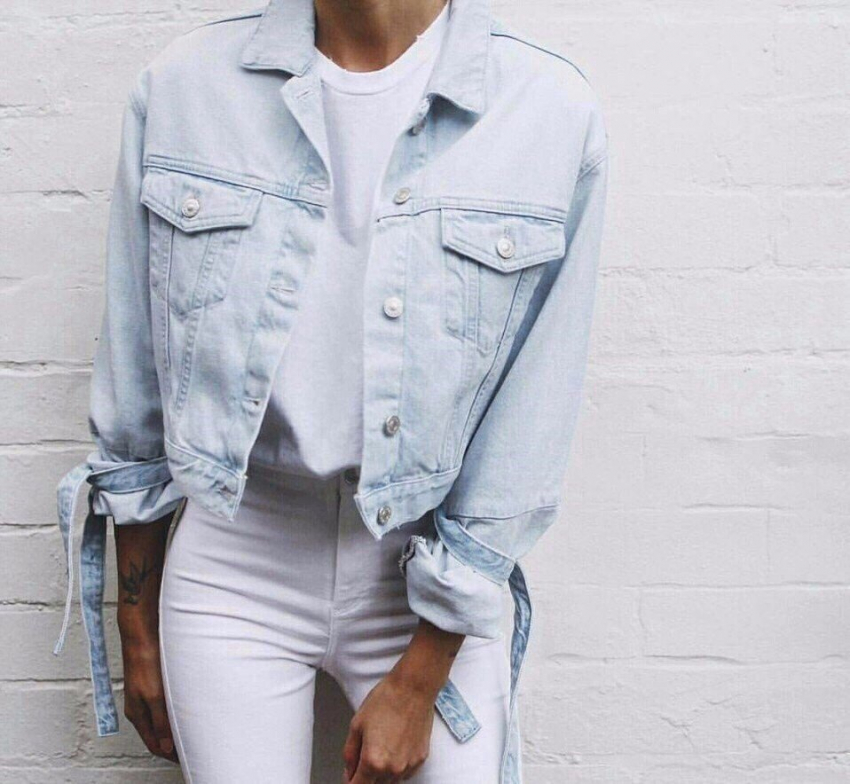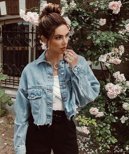 Кроп-силуэт набирает обороты. Это хороший ответ на вопрос, как переделать джинсовую куртку в модную — просто обрезать, талия должна быть на виду. Но лучше все-таки приобрести модель нового сезона, потому что у актуальной куртки должны быть и такие признаки:
