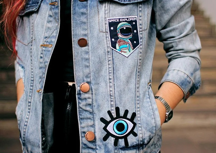 - Обильный декор. Одна-две надписи — этого мало. Сегодня куртка изрисована узорами, как чемодан путешественника.
