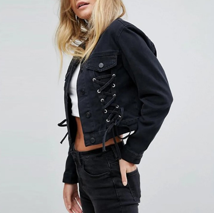 Если хватит смелости, можно убрать у поднадоевшей укороченной куртки спинку и украсить сеткой из джинсовых шнуров. Такая модель