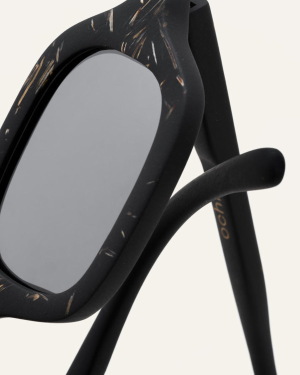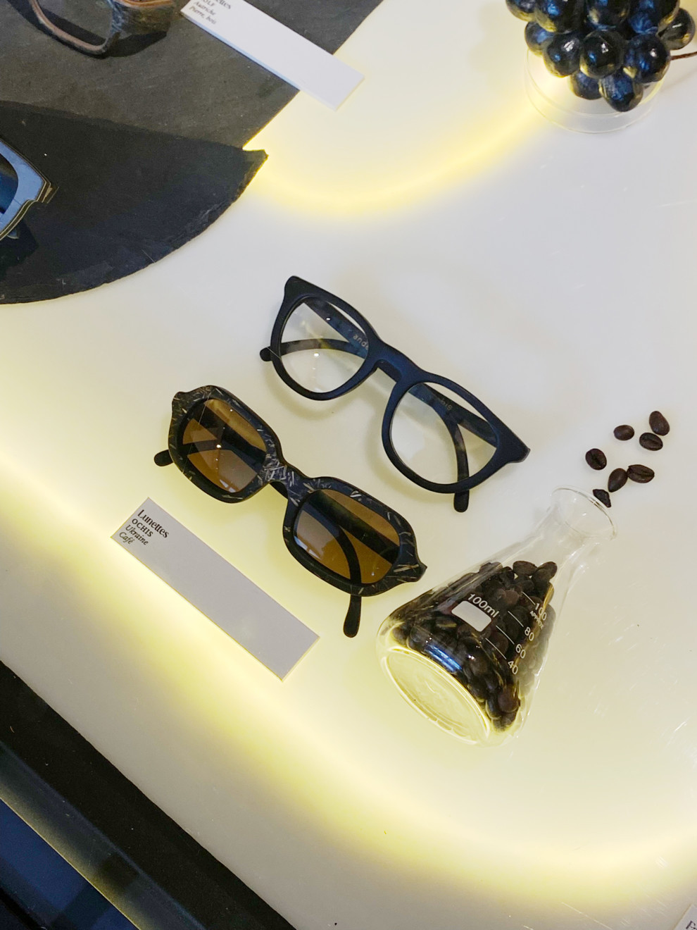 OchisБренд Ochis перший у світі створив окуляри на основі кави. Використану кавову гущу змішують з натуральними оліями та створюють новий рослинний матеріал, що є водонепроникним, має матову текстуру та зберігає запах кави впродовж кількох місяців. Окуляри з кави розкладаються в 100 разів швидше, ніж звичайні пластикові. Кавова оправа розкладається в ґрунті або воді й перетворюється на природне добриво для нових рослин.