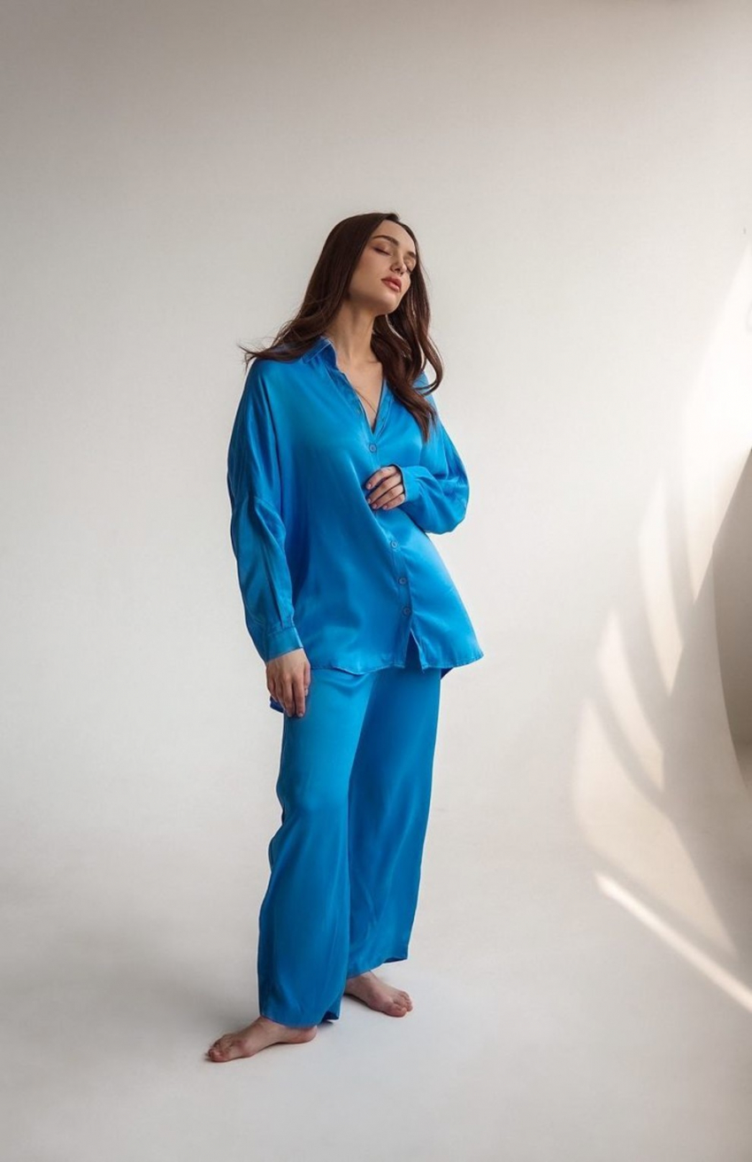 Anna OctoberКомфорт і практичність під час вибору нових речей вийшли на перший план цього сезону. Але хто сказав, що зручні шовкові костюми, які багато модниць звикли носити вдома, не можуть стати окрасою вашого міського чи відпускного стилю. Пропонуємо не ховати ефектні комплекти із сатину, шовку або атласу й носити їх щодня, створюючи собі відповідний розслаблений настрій. А почати ліпше з брючної трійки OCEAN X SILK м’ятного відтінку, в яку просто неможливо не закохатися. Ви можете носити цілісний образ бренду або поєднувати кожен елемент костюма з іншими речами в гардеробі. Костюм із сатину з наймоднішим анімалістичним візерунком цього літа ви знайдете в колекції SAYAMIMI – шорти й об’ємну сорочку, прикрашену зебровим принтом. Для дівчат, які віддають перевагу жіночнішим силуетам, цього літа також знайдеться підхожий варіант – шовковий спідничний костюм у небесно-блакитному кольорі FORSEA STUDIO, що складається з бралета із жатої тканини, силуетної спідниці та блузи невимушеного крою.