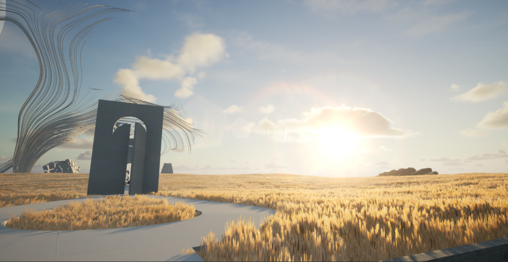 Helen DoГості показу перемістилися у віртуальний всесвіт, наповнений українськими колосками та омріяним мирним небом. Блакитне небо й золотисте поле — 3D-версія прапора України, на фоні якого дизайнерки представили одяг, натхнений українськими культурними кодами. У пшеничному полі з’явилися футуристичні конструкції, які символізують нове сприйняття дійсності та майбутнє України.