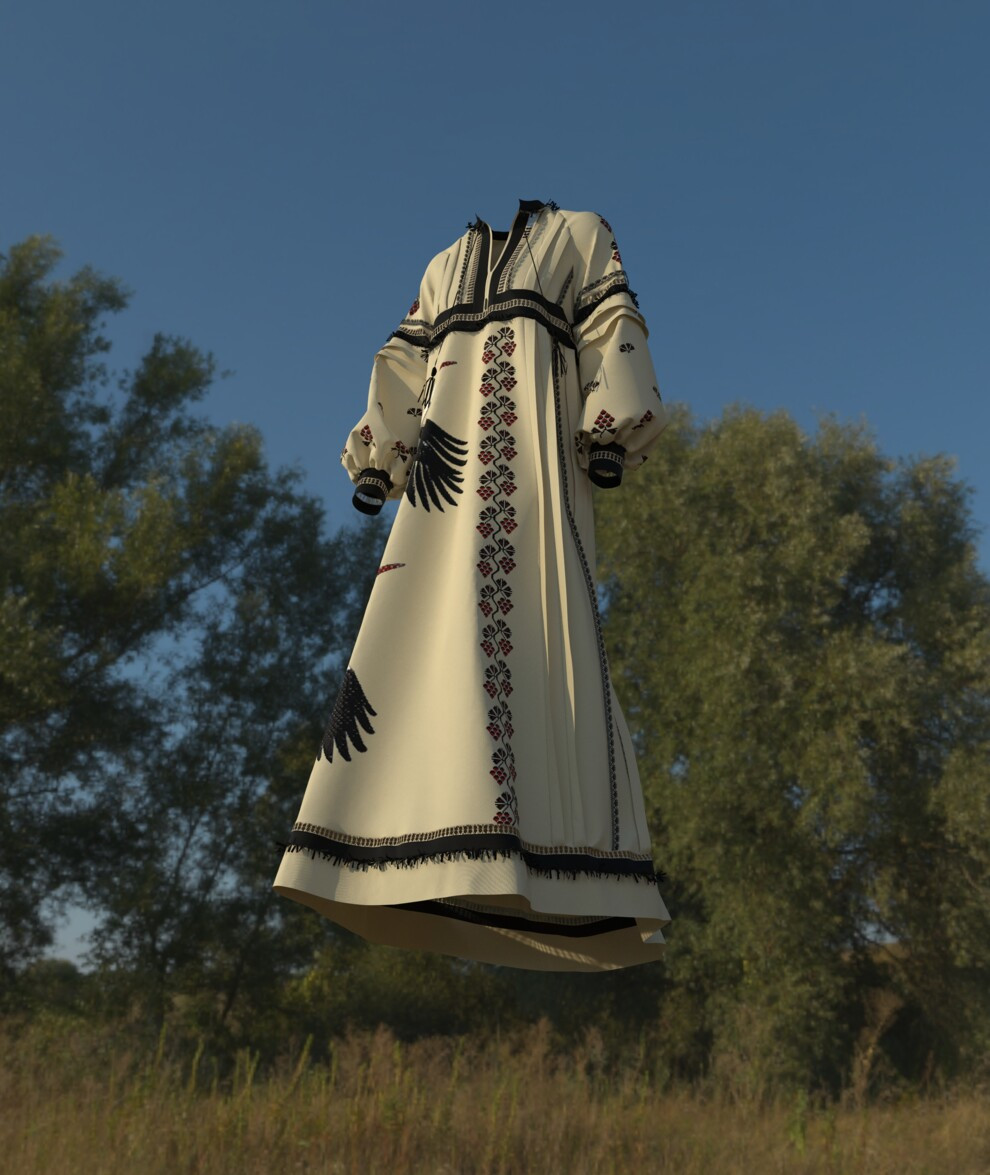VR-локація показу«Чимало студентів PUSHKA School були змушені покинути свої домівки, свою Батьківщину, і зараз вони перебувають у різних куточках Європи. Кожен з них хоче повернутися додому, тому колекція побудована на українській айдентиці, власному корінні, баченні ДНК України. Ми віримо, що правда й справедливість переможуть», — каже Ірина Красильникова, керівниця PUSHKA School.