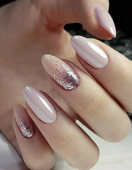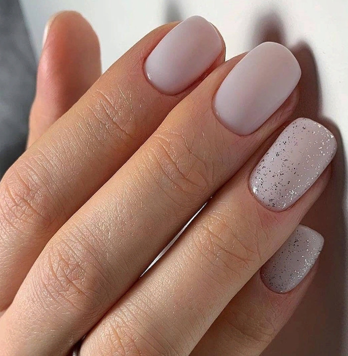 На ногтях он всегда выглядит очень женственно и лаконично. Идеально подходит для повседневной жизни, так как не привлекает к себе особого внимания. Но при этом такой гель-лак делает женские руки очень красивыми и ухоженными. Для более яркого и праздничного образа можно разбавить оформление ногтей глиттером.