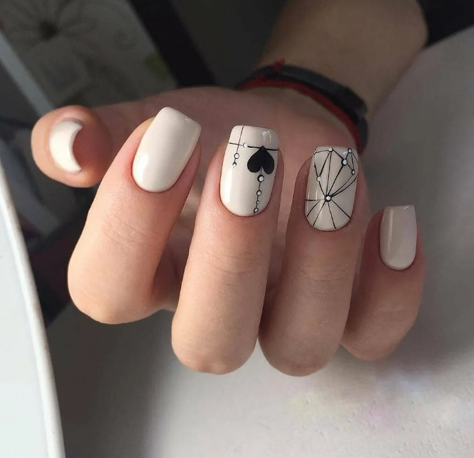 В 2023 году популярен дизайн ногтей «паутинка». Он смотрится креативно и стильно. В современном нежном маникюре нейл-мастера используют черный гель-лак. Он позволяет выполнять узоры более выразительно. Еще один крутой тренд — дизайн с фольгой. Этот элемент декора всегда смотрится дорого и богато, особенно в золотом цвете.
