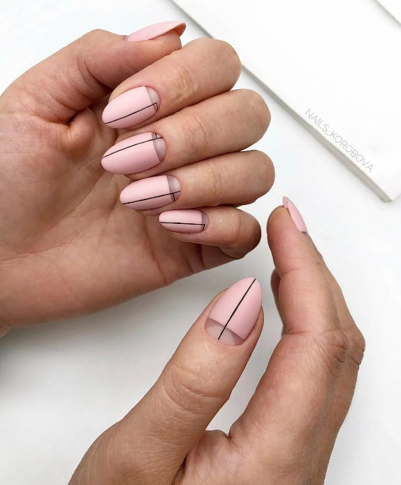 Особенно круто в 2023 году будет смотреться матовый дизайн ногтей с геометрией. Покройте ногти розовым лаком, а сверху нанесите ромбики или квадраты. Их можно добавить на один ноготь, а можно разместить сразу на всех. Также интересно будут смотреться полосы или маленькие точки. Из точек можно даже создать какой-то интересный узор или рисунок.