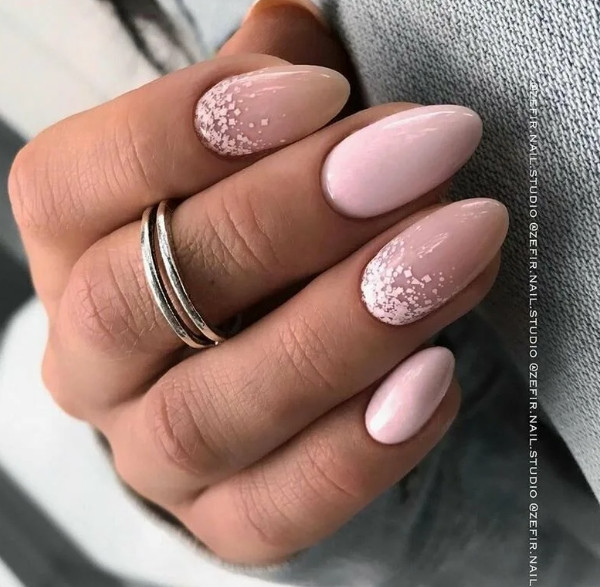 Блестки на ногтях всегда привлекают особый интерес окружающих. Очаровательное сияние моментально бросается в глаза. Они способны превратить невзрачный простой дизайн в великолепие. Их можно наносить сразу на все ногти, маникюр это не испортит, он станет только нежнее и красивее.