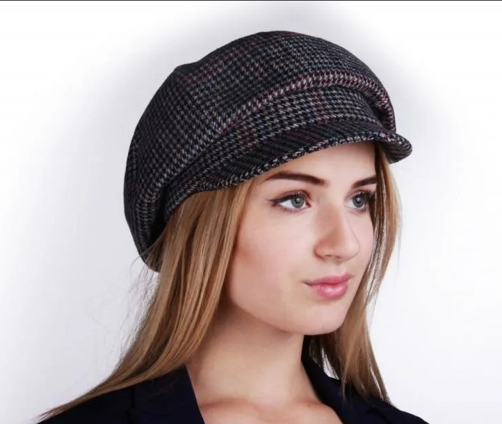 - Мужская коппола. Головной убор из шерсти с широким козырьком в кофейном, светло- и темно-сером, черном, синем, голубом, красном и цвете черной смородины с вкраплениями фиолетового. Твидовая кепка в британском стиле подойдет даже для суровой зимы с -40 °С, если выполнена из натуральных материалов.