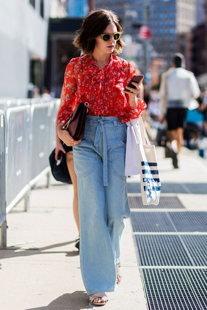 Широкие брюки очень удобны, они не сковывают движения, добавляют мобильности в повседневных делах. Один из таких фасонов — кюлоты. К счастью модниц, они бывают и из денима. Такая одежда прекрасно сочетается со спортивной обувью.