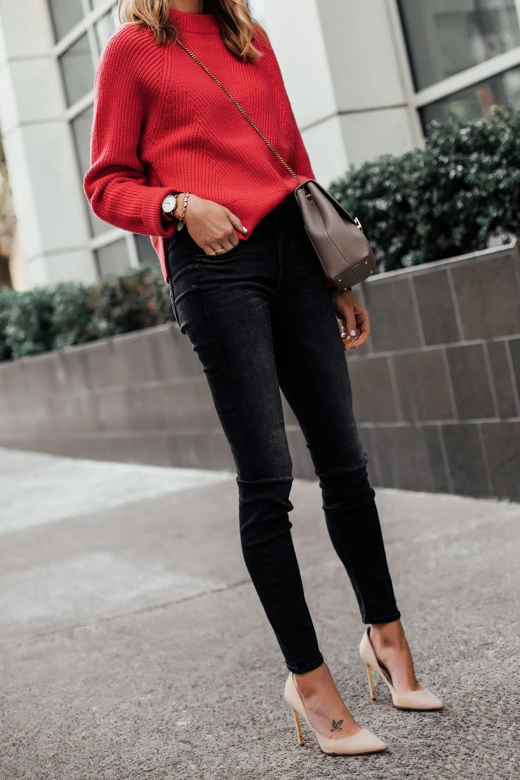 Джинсы-скинни очень красиво смотрятся с туфлями на высоком каблуке, хотя модницы не пренебрегают кедами и белыми кроссовками. Аккуратная посадка брюк позволяет использовать их в деловых образах. Эти модели обычно мало украшены декором, изредка допускается потертость или надрез в районе коленей. Скинни визуально удлиняют ноги, особенно это касается джинсов черного цвета. Строгость образу можно придать с помощью пиджака.