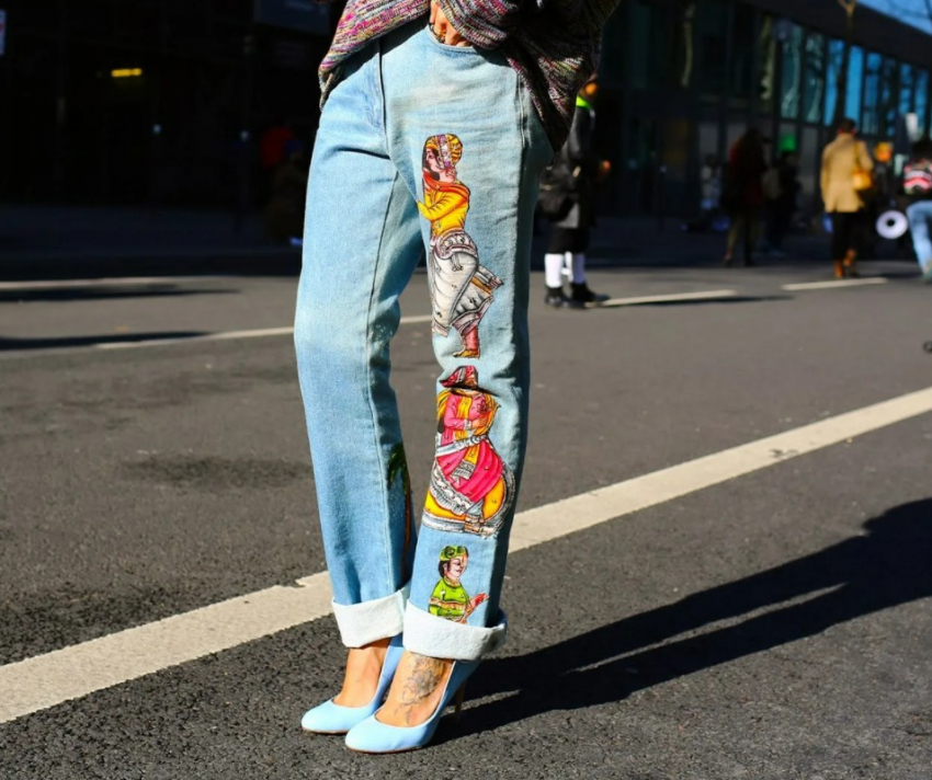 Украшение джинсов узорами и надписями позволяет индивидуализировать каждую модель. Большое внимание уделяется принтам и нашивкам. Возможны варианты росписи одежды вручную. Этот вид декора наиболее востребован для женщин на лето. Модные джинсы в 2023 году для женщин на осень-зиму представлены моделями с утеплителем внутри.