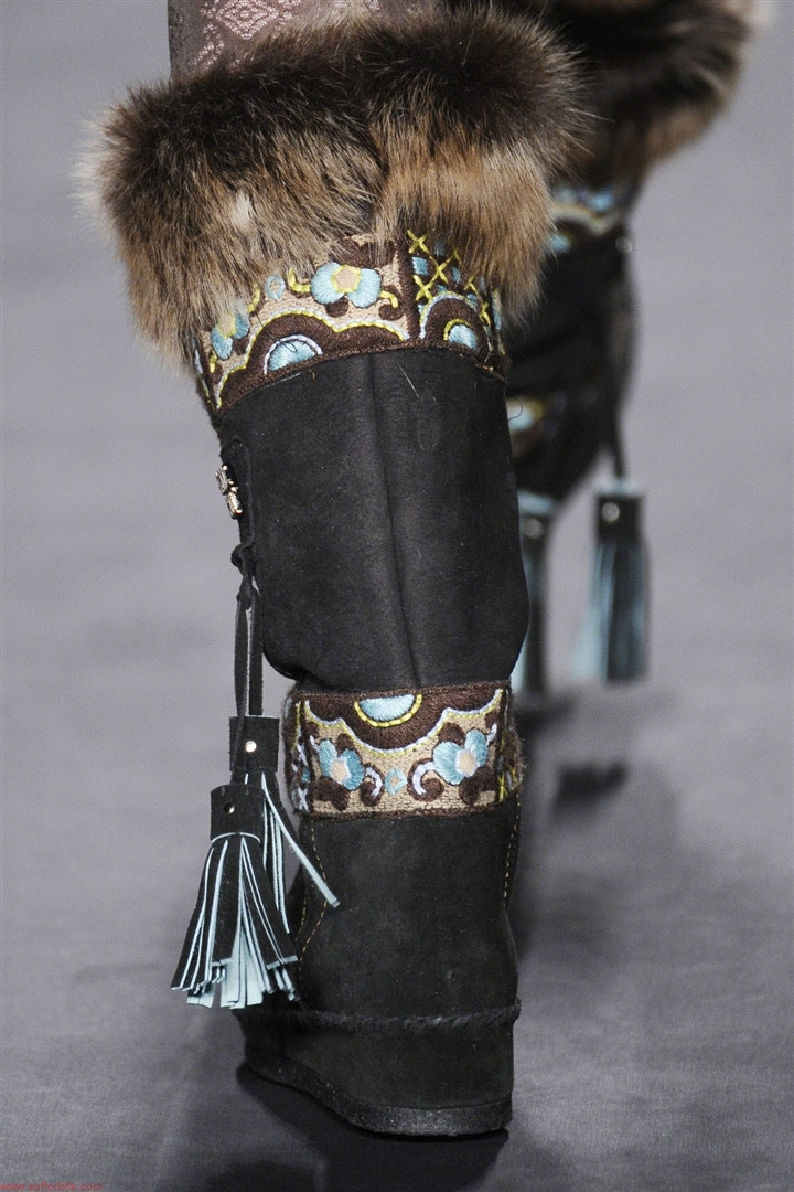Муклуки – не единственные меховые сапоги, появившиеся в модных тенденциях на сезон осень и зима 2022-2023 гг. Другие модели, однако, с учетом российского климата, больше подходят для ранней осени, чем для всего сезона, если только не решите носить их дома или на работе, потому что его природа не ограничивает выбор экстравагантных моделей. Несколько лет назад одним из хитов весны-лета были меховые тапочки. Сейчас появились осенне-зимние модели. Такие меховые мюли в своих коллекциях представили Coach, Dsquared2, Proenza Schouler и Nina Ricci.