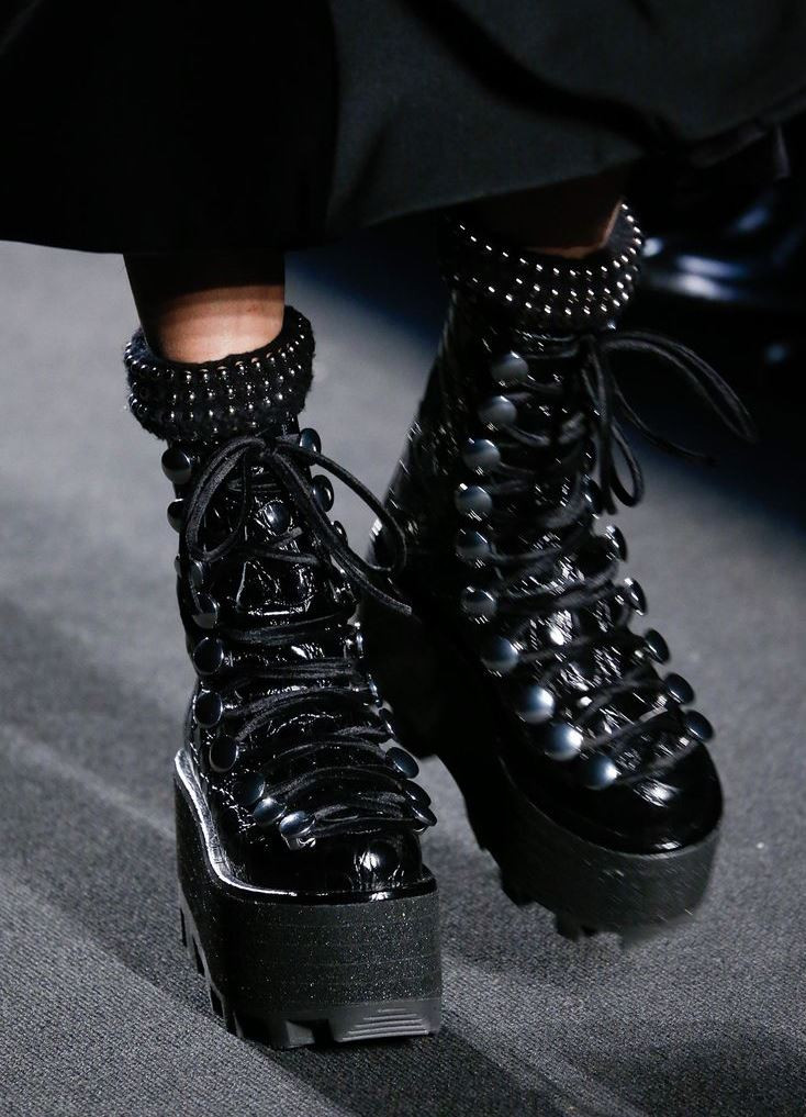 К самой удобной обуви на осень-зиму можно отнести ботинки. Модели на плоской подошве со шнуровкой, которые помогают идеально подогнать их по ноге, — предложение для женщин, планирующие проводить много времени на свежем воздухе. Однако удобство — это только одна из сильных сторон. Существует их огромное разнообразие, позволяющее подобрать пару к собственному стилю. Можно выбрать как черные тяжелые модели с металлическими украшениями, так и продвигаемые Philosophy di Lorenzo Serafini.