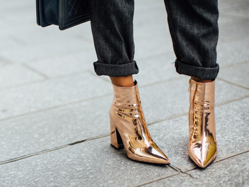 Сапоги с эффектом металлик, ботильоны и даже зимние сапоги доказывают, что золото, серебро и другие цвета в глянцевой версии предназначены не только для вечерних выходов, но и для повседневной жизни. Диковиной может быть модель серебристых и золотых сапог из коллекции Balenciaga. Другие дизайнеры подошли к вопросу куда более приземленно и предложили модели, которые может носить каждая женщина.