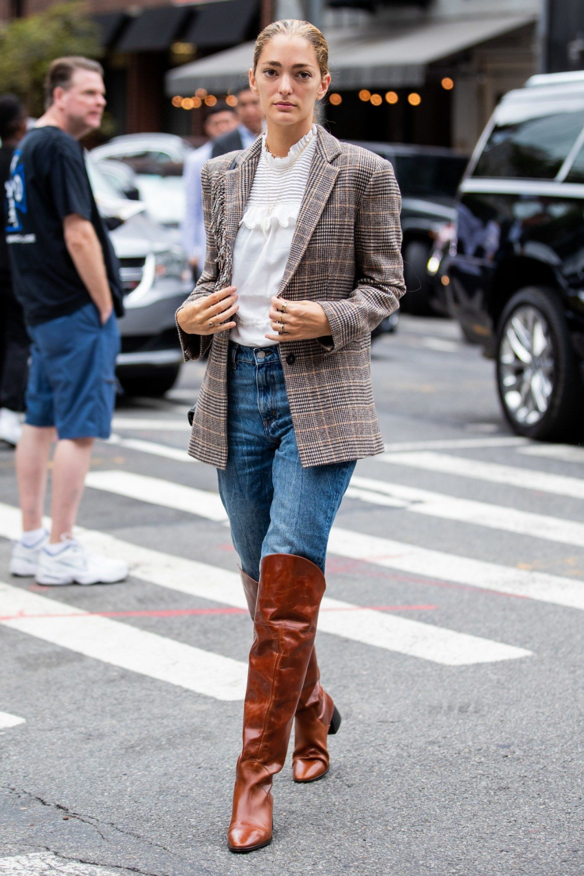 Сапоги на плоской подошве идеально дополнят деловой стиль. Если женщина решится на модель до колена с каблуком, то получится еще более элегантный образ. Юбка-карандаш и жакет с белой блузой или облегающие зауженные штанины, классическая белая рубашка могут стать основой зимнего стиля на работе. Можно сочетать их, например, с плотными колготками и свободным свитером длиной с тунику.