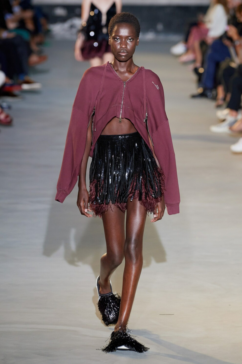 CoureggesДлина миниПожалуй, самая трендовая юбка сезона весна-лето 2022 должна быть неприлично короткой. Она может быть средней, низкой или высокой посадки, но обязательно должна быть не ниже середины бедра. Так что помимо мини-юбки нужно успеть подготовить к весне худые и стройные ноги, чтобы модничать в самой востребованной модели сезона. Christian Dior предложили серию коротких красочных юбок, украшенных животными и графическими принтами, которые лучше всего носить с нейтральным верхом в виде белой футболки, рубашки или нюдового боди. Couregges предлагают комбинировать мини с полупрозрачными трикотажными брюками, а Prada сочетают атласную короткую юбку со шлейфом с байкерской потертой курткой.