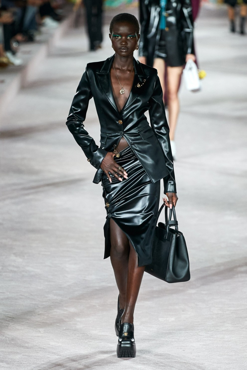 Miu MiuКожаные юбки особенно хороши в начале весны, когда уже не холодно, чтобы оголить ноги, но еще не слишком жарко для паркого материала. Выбирайте новый вид юбки-карандаш с небольшим разрезом и пуговицами в коллекции Versace весна-лето 2022, носите модель А-силуэта Michael Kors Collection, отсылающую к культовому силуэту 1950-х годов, или делайте ставку на вариант на запах Victoria Beckham в яркой лакированной коже синего цвета.