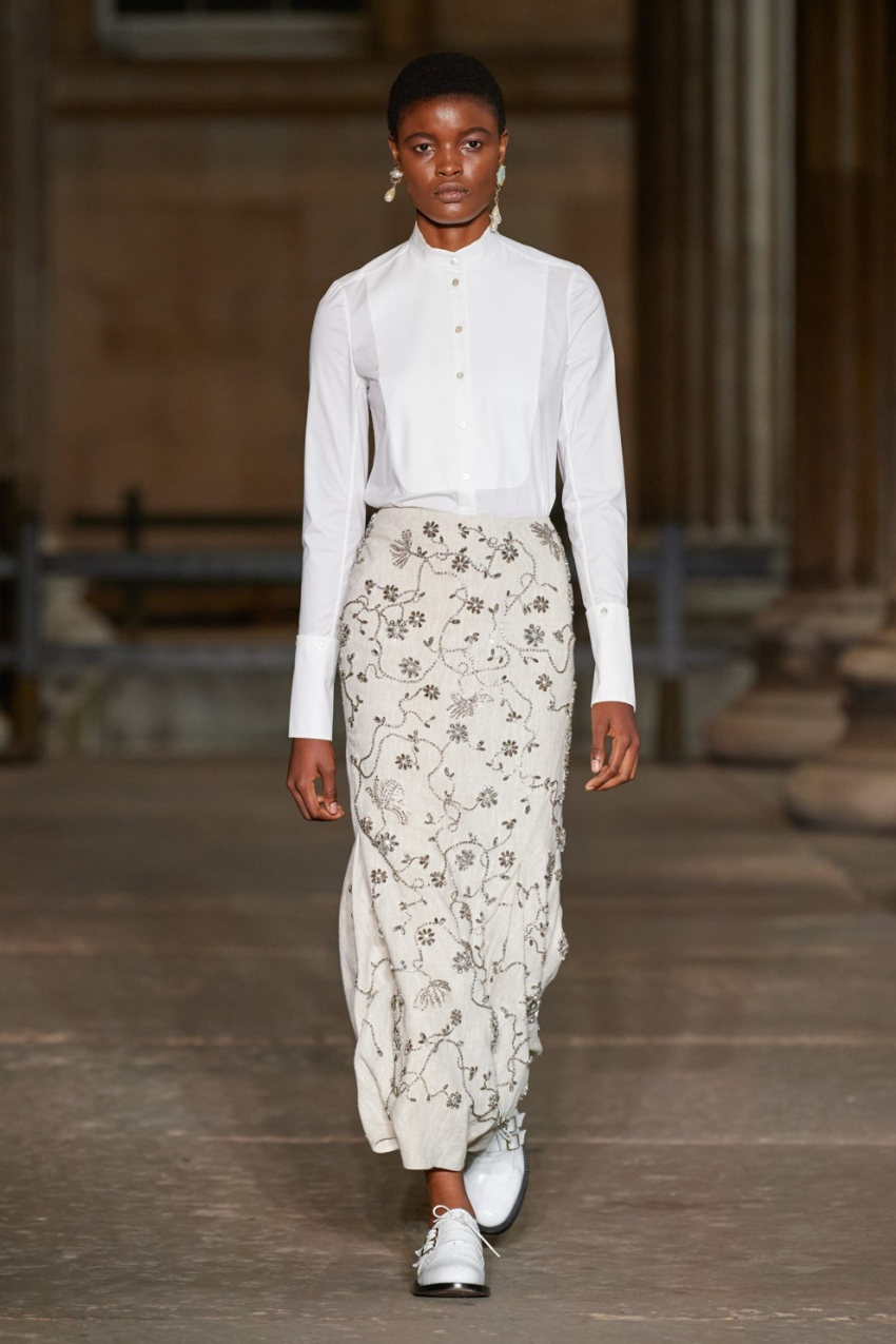 Self-PortraitВот мы и подошли к завещающему тренду среди юбок сезона весна-лето 2022. Помимо экстремально коротких моделей, которые осмелятся носит не все девушки, дизайнеры предлагают противоположный вариант - закрытую юбку в пол. Saint Laurent предлагают носить минималистичную макси-юбку с полупрозрачным топом, чтобы добавить провокации в наряд, Erdem сочетают цветочную юбку с наглухо застегнутой белой рубашкой, а Coperni миксуют с открытым топом.