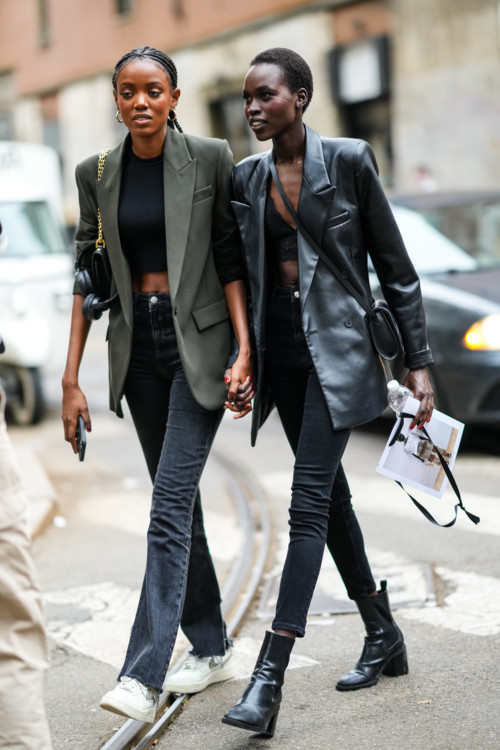 Джинсы - тот самый предмет одежды, который есть в гардеробе у каждой модницы. Вне зависимости от того, какой тренд будут популяризировать дизайнеры и streetstyle-звезды сегодня или завтра, джинсы никогда не выйдут из моды, меняться будут лишь актуальные фасоны и оттенки денима. Долгое время узкие джинсы отсутствовали на модных радарах, однако осенью 2021 они вновь стали появляться в коллекциях брендов. С каждым месяцем джинсы "скинни" становятся все более востребованными на улицах. Модницы носят их с туфлями-лодочками и клетчатыми рубашками, с массивными дубленками и казаками, заправляют в грубые ботинки и элегантные сапоги, сочетая с уютным трикотажем, объемными жакетами и безразмерными худи.