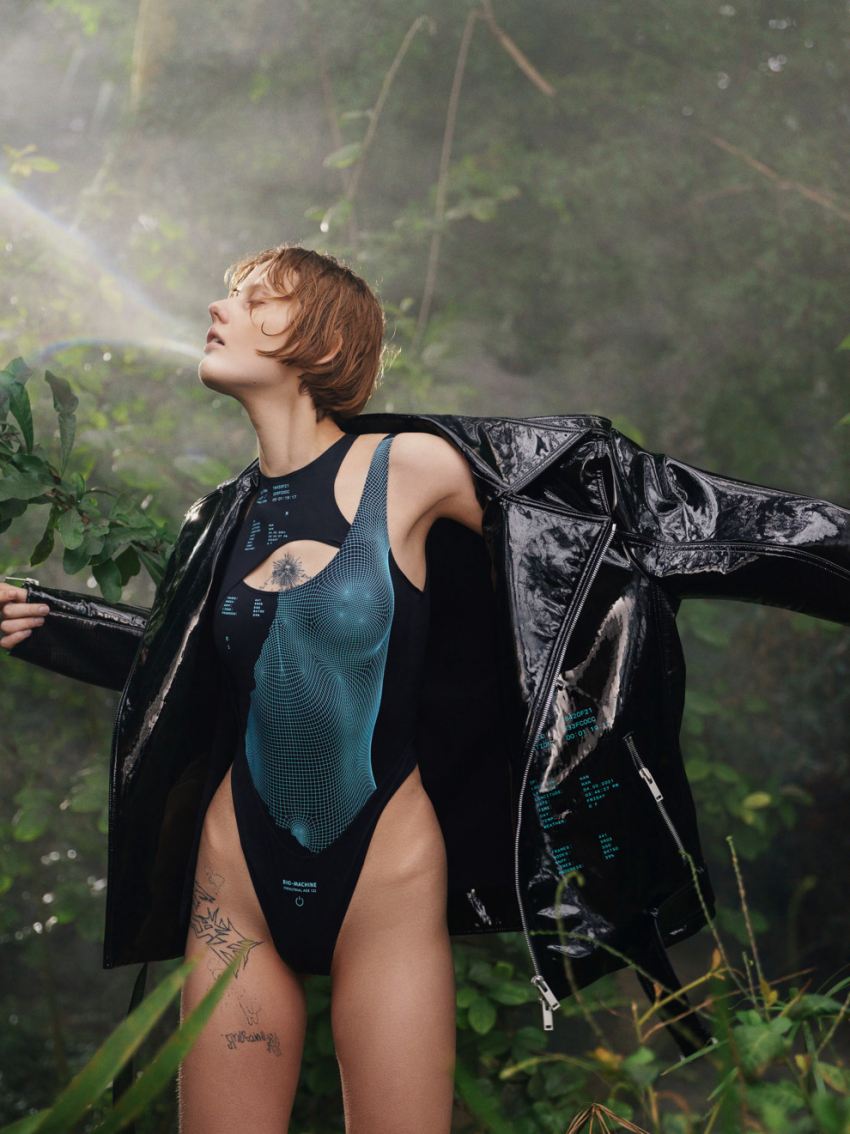 Принты на комбинезонах, леггинсах, топах и платьях были созданы в сотрудничестве с 3D-художником Таймуром Акбаром Ханом. Концептуальный творец из Пакистана работает с научной фантастикой, роботами и материалами будущего. Коллекция включает в себя цифровые прототипы, созданные в крупнейшем международном ритейлере цифровой одежды DRESSX.