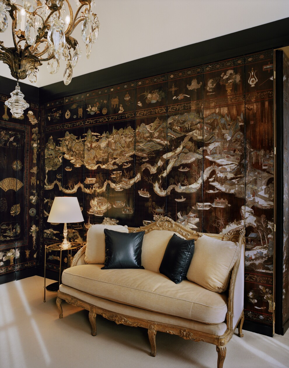 Китайские ширмы, которые в апартаментах повсюду, были большой любовью Мадемуазель. Их открыл своей возлюбленной Артур Бой Кейпел, и с тех пор Габриэль собирала их коллекцию, пока в той не собралось около 20 роскошных экземпляров. Их было легко складывать и перевозить, а, значит, она могла воссоздать дух своего дома и царившей в нем роскоши практически где угодно. Со свойственным ей бунтарским нравом она препарировала ширмы – и превращала в декоративные панно, ретушировала с помощью кистей и позолоты, а, когда ей того хотелось, – просто прикрепляла к ним рисунки своих друзей Жана Кокто и Кристиана Берара.