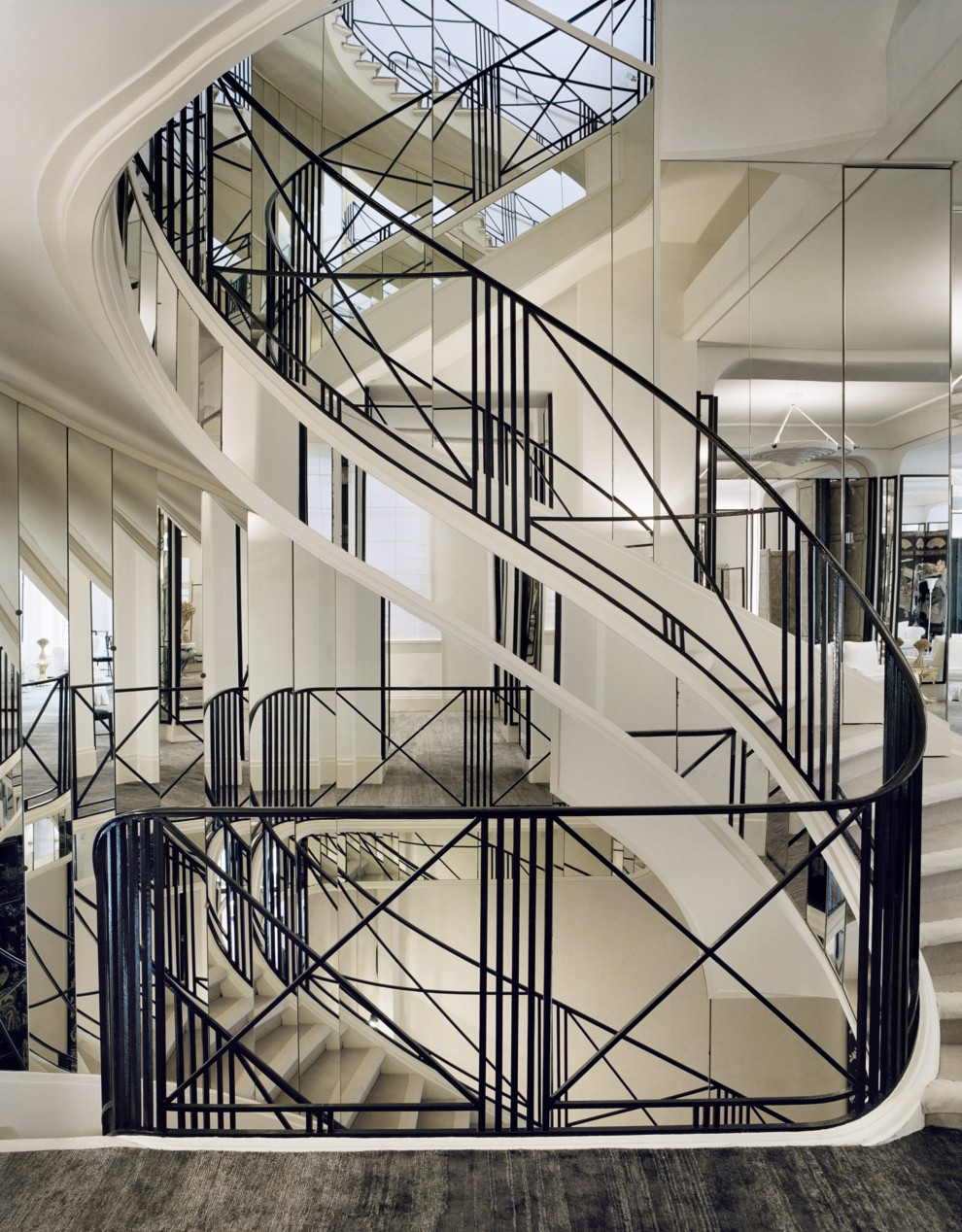 В апартаментах есть еще две комнаты: так называемая Study Room, и столовая, где за роскошным столом она собирала камерные компании друзей. Но не они впечатляют сильнее всего, а та самая легендарная лестница, устланная бежевыми коврами. Хитро сконструированные зеркала позволяли Мадемуазель во время показов сидеть наверху и, оставаясь незамеченной, контролировать каждую складку платьев, каждое выражение восторга публикой, каждый взмах пера критиков.