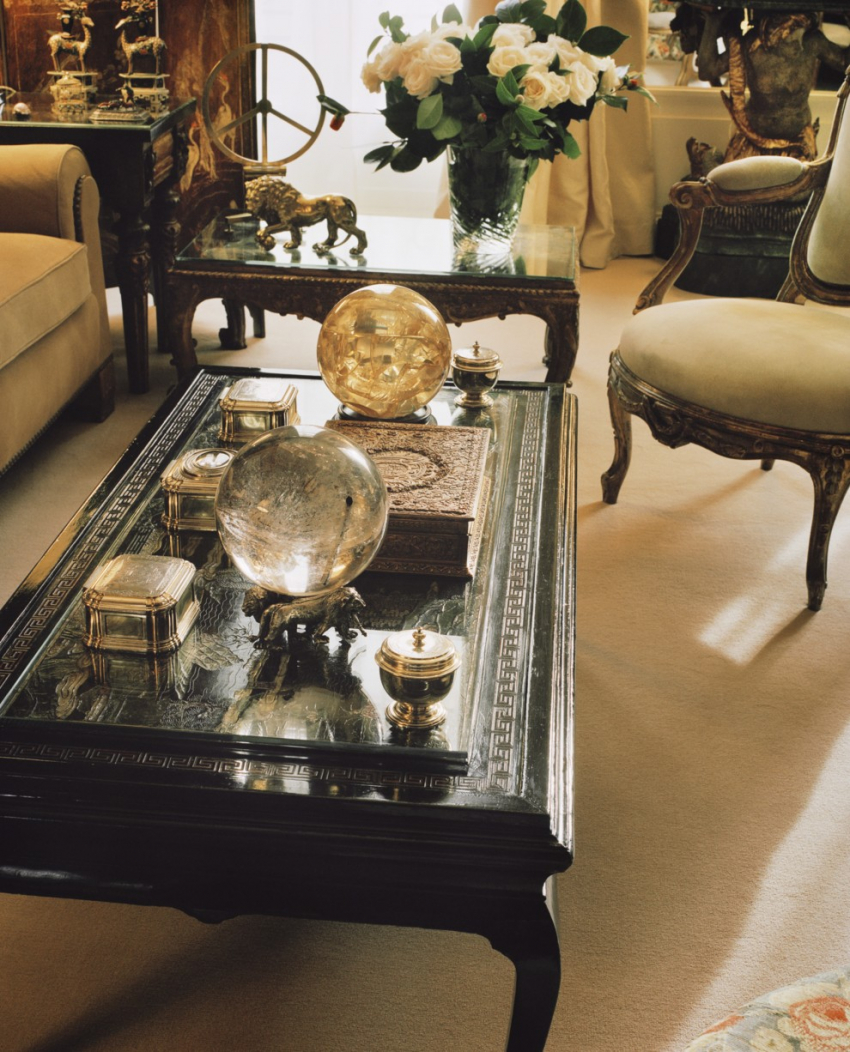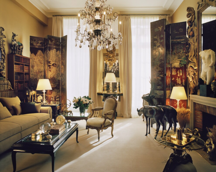 С присущей ей свободой и дерзостью Мадемуазель выбирала мебель и предметы, которые создавали необыкновенные коллизии между эпохами, стилями и цивилизациями: объекты из Древней Греции и Египта соседствуют с изделиями из Китая (где она, впрочем, никогда не бывала) и Венеции.