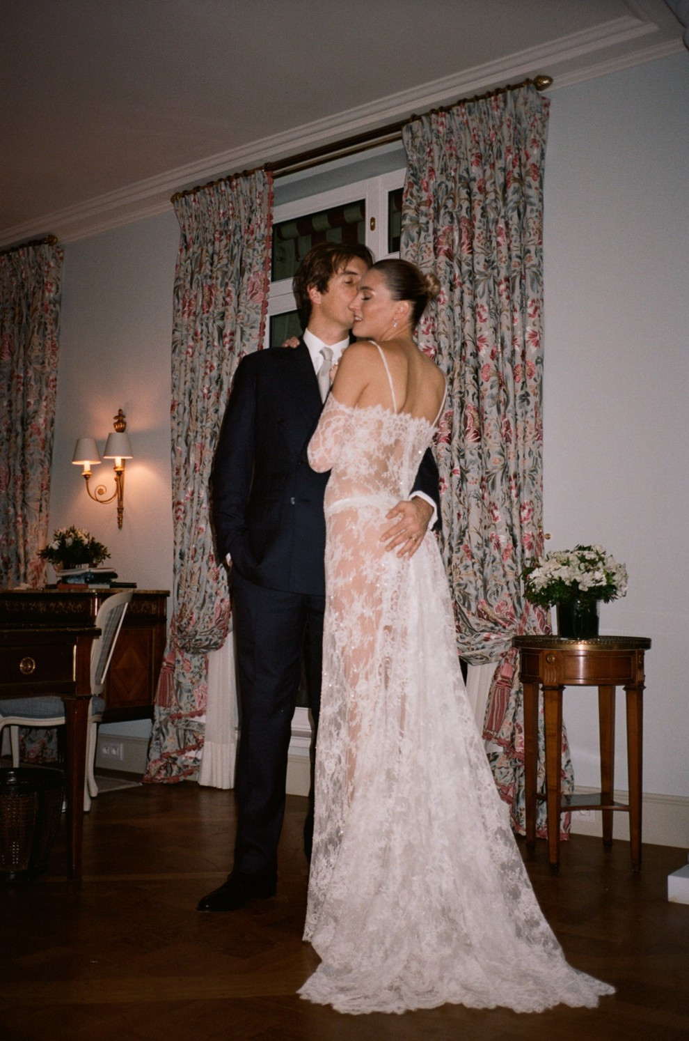11 декабря список самых красивых свадеб уходящего 2021 года пополнила свадьба французской fashion-инфлюенсера Камиль Шарьер и продюсера Франсуа Ларпена. После двух лет отношений пара решила официально зарегистрировать свой брак в Париже. Первый свадебный образ Камиль состоял из полупрозрачных блузы и миди-юбки, расшитых сотнями мерцающих пайеток, а второй наряд оказался не менее провокационным – "голое" платье на тонких бретелях, выполненное из ажурного кружева.