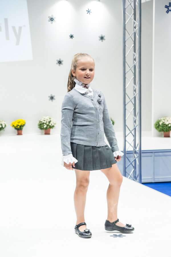 Дизайнеры не забыли и про верхнюю одежду — пальто для девочки. Тоже серое и тоже с элементами классического стиля.