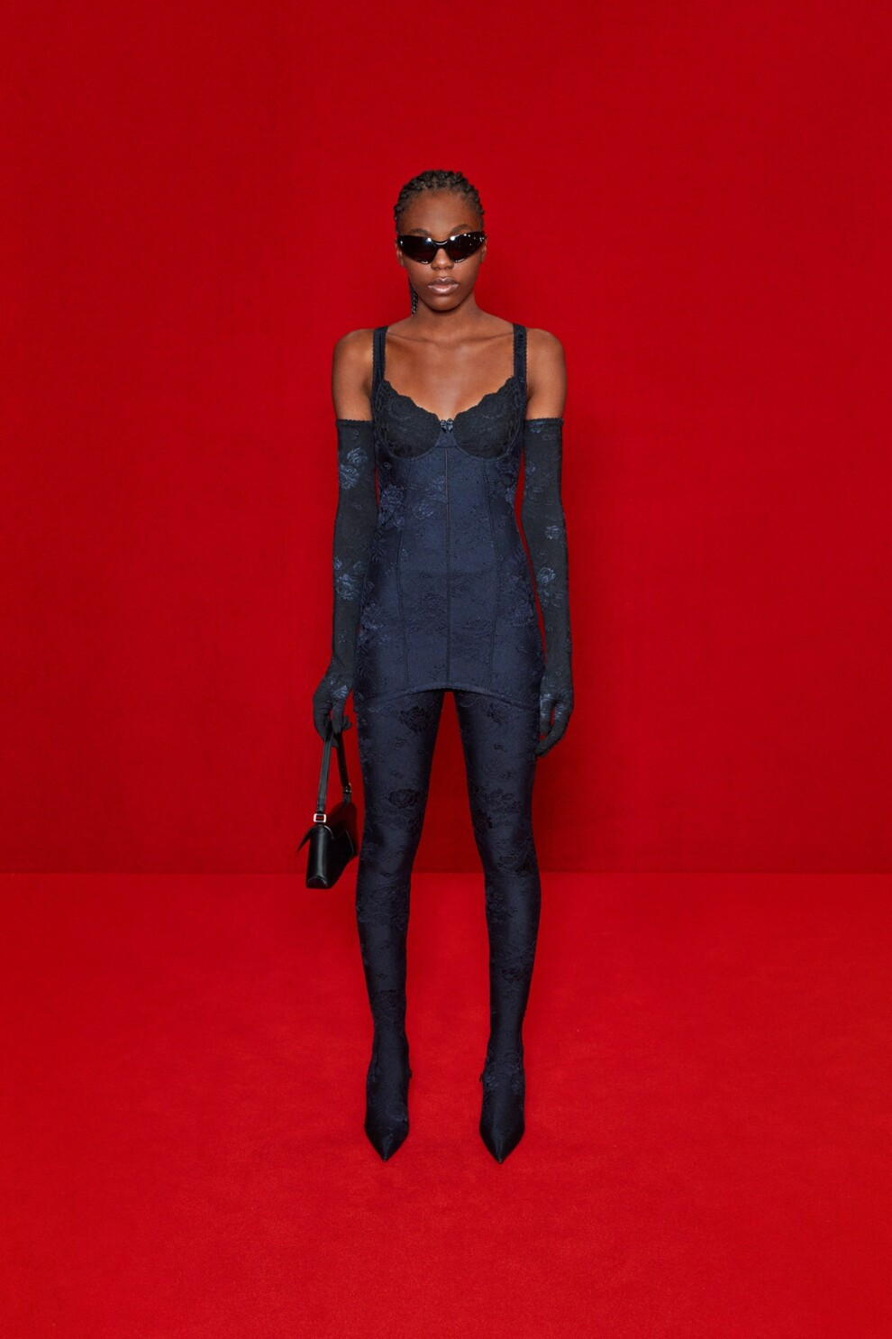 Saint Laurent, весна-лето 2022Выбирайте обувь на платформе и нарядное платье, а также пару длинных перчаток, чтобы быть в тренде в этот Новый год.