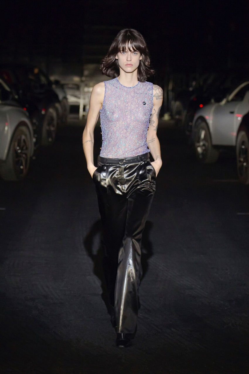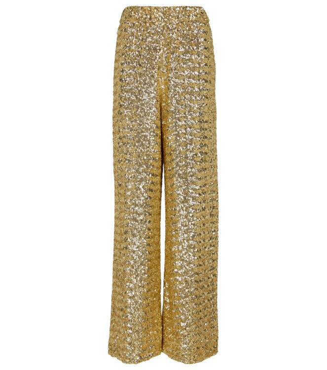 Alberta FerrettiВещи в оттенках драгоценных металлов - хит этого сезона. Берите на заметку эту модную тенденцию и выбирайте диско-брюки в золотом цвете Alberta Ferretti, щедро декорированные кристаллами, пайетками и блестящей бахромой. Настолько эффектные брюки легко составят конкуренцию даже самому блестящему платью еа светской вечеринке. Комбинируйте их с лаконичным верхом в виде черного свитера, топа или водолазки, чтобы не перегружать образ. По такому же принципу носите брюки с пайетками Celine, металлизированную модель Coperni и пары, украшенные разноцветными кристаллами Alexandre Vauthier.