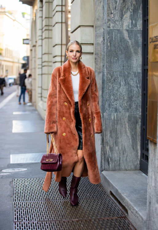 StreetstyleШубы из искусственного меха – не только модный аналог натуральных вариантов, но и способ присоединиться к осознанному потреблению. Длинные или короткие, пушистые или гладкие – этой зимой выбирать вам, в какой шубе из экомеха провести холода, однако пока вы не определились, мы собрали для вас актуальные образы streetstyle-звезд в Париже, Милане, Лондоне и Нью-Йорке. Этой зимой можно заметить большую концентрацию белоснежных и карамельных меховых пальто и теплых шуб из овчины свободного кроя, которые девушки сочетают с грубыми ботинками, сапогами-трубами и обувью на платформе. Чтобы экошуба легко рифмовалась со всем гардеробом, выбирайте длинную модель в нейтральной цветовой гамме, а если ваша душа требует экспериментов – присмотритесь к пальто в шахматную клетку или звериный принт.