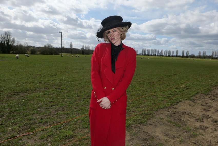 Образы Chanel занимали особое место в гардеробе Дианы. Поклонница классических костюмов и стеганых сумок, она носила Chanel вне службы и во время исполнения роли принцессы Уэльской. «На некоторых фотографиях она выглядит так, как будто ее одевал кто-то другой», – говорит Кристен Стюарт. «Даже если наряд красивый, она кажется в нем заключенной. В тоже время, исследуя тему, я заметила, что всякий раз, когда Диана носила Chanel, она выглядела по-настоящему. Также я заметила вот что: когда она выглядела сильной, довольно часто она носила Chanel». Стюарт включила это наблюдения в свою игру. «В фильме мы используем образы Chanel, когда Диане нужна помощь», – объясняет она. «Если сцена была сложной или она чувствовала угрозу, мы надевали на нее костюм Chanel, чтобы дать ей некую поддержку. Даже если она внутренне не чувствовала себя хорошо, в эти моменты она стояла прямо и сияла».