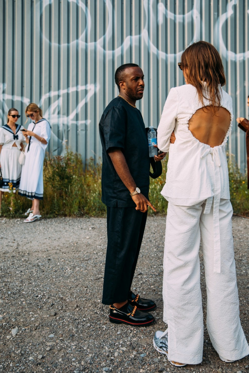 Костюм с жилетомФото: STYLEDUMONDEЕще одна константа текущего сезона - оверсайз-блейзеры, брюки со стрелками и, конечно же, строгие костюмы. Заменив пиджак жилетом, вы добьетесь нужного эффекта, даже если на улице слишком тепло для шерстяного жакета. Комбинация с футболкой и кроссовками даст возможность позаигрывать с привычным повседневным образом.