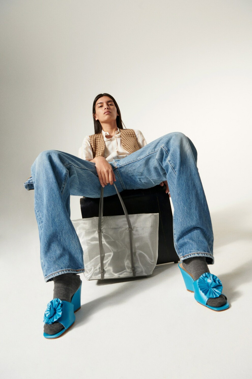 Acne StudiosОбъединение этих двух элементов, так неподходящих друг другу, объясняется и тем, что эту комбинацию можно воспринять как еще один способ перенести домашний комфорт на улицу, а также как еще одну интерпретацию устойчивого развития, позволяющего потреблять меньше и открывающего целое поле для новых стилистических экспериментов.