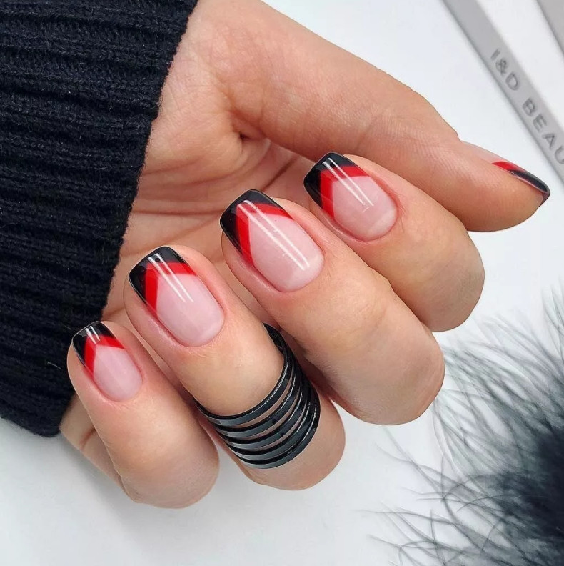Еще одна тенденция, которую выделяют специалисты нейл-арта, — использование контрастных цветов для маникюра френч.