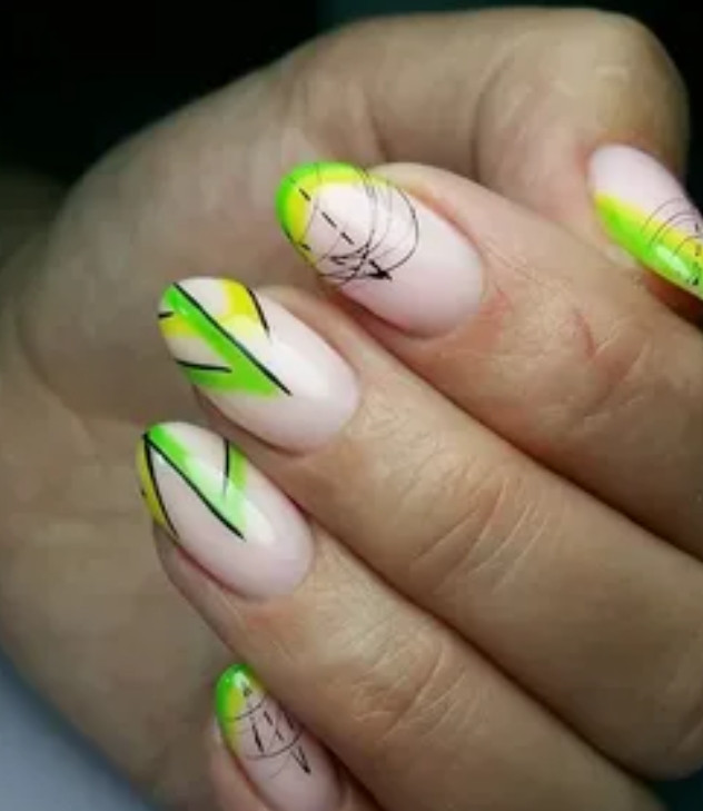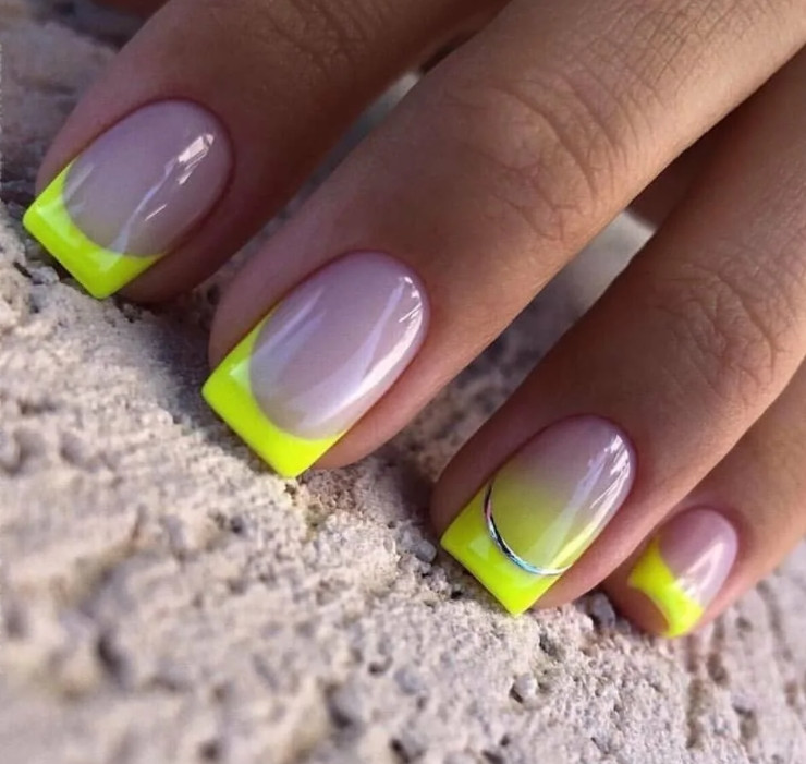 - разноцветные обводки, иногда несколько «улыбок» (цветной французский маникюр);