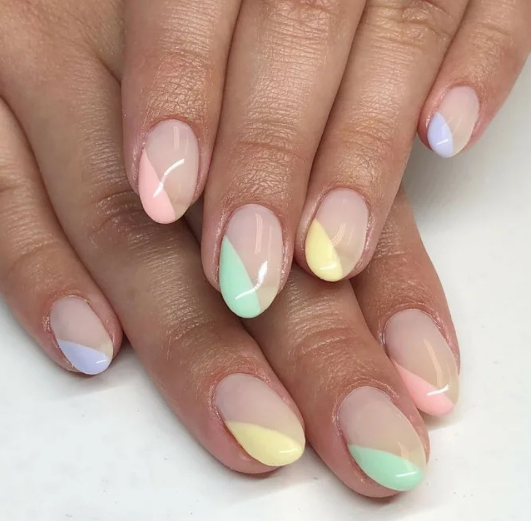 - многоцветный — ноготь выкрашивают в 2 и более цветов по вертикали или горизонтали ногтевой пластины;