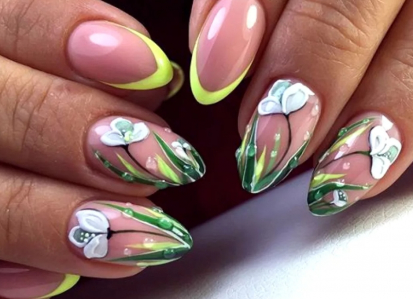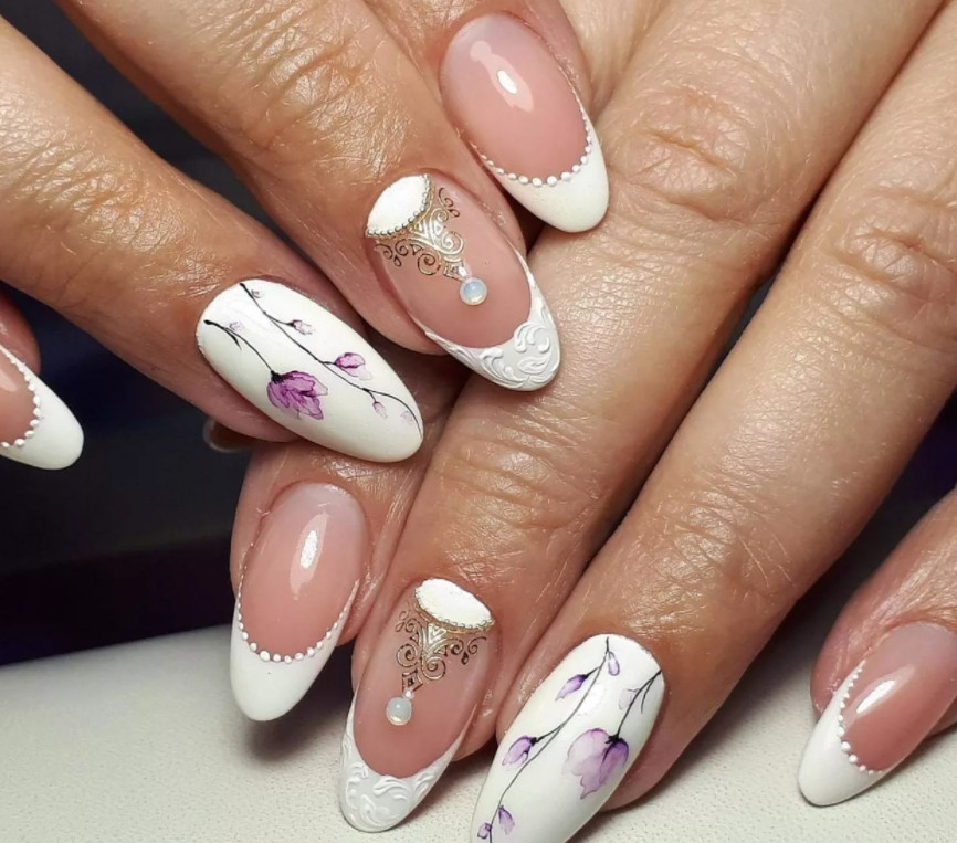Искусство нейл-арта созвучно с модными трендами. Один из них — флористические принты, цветочные аппликации. В последнее время популярны кружевные ткани, ажурные вставки на одежде. С этим трендом перекликаются кружевные узоры на френче.