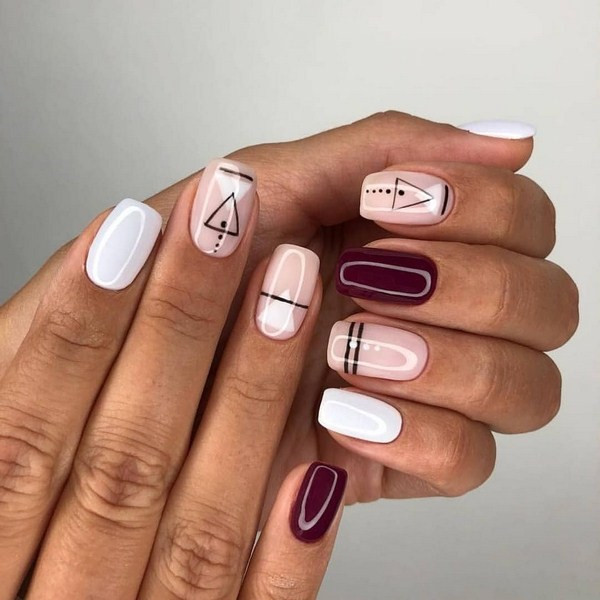 Этот узор покорил девушек несколько сезонов назад. Выполняется он просто и быстро, но выглядит очень необычно, поэтому быстро обрел популярность и продолжает быть востребованным.