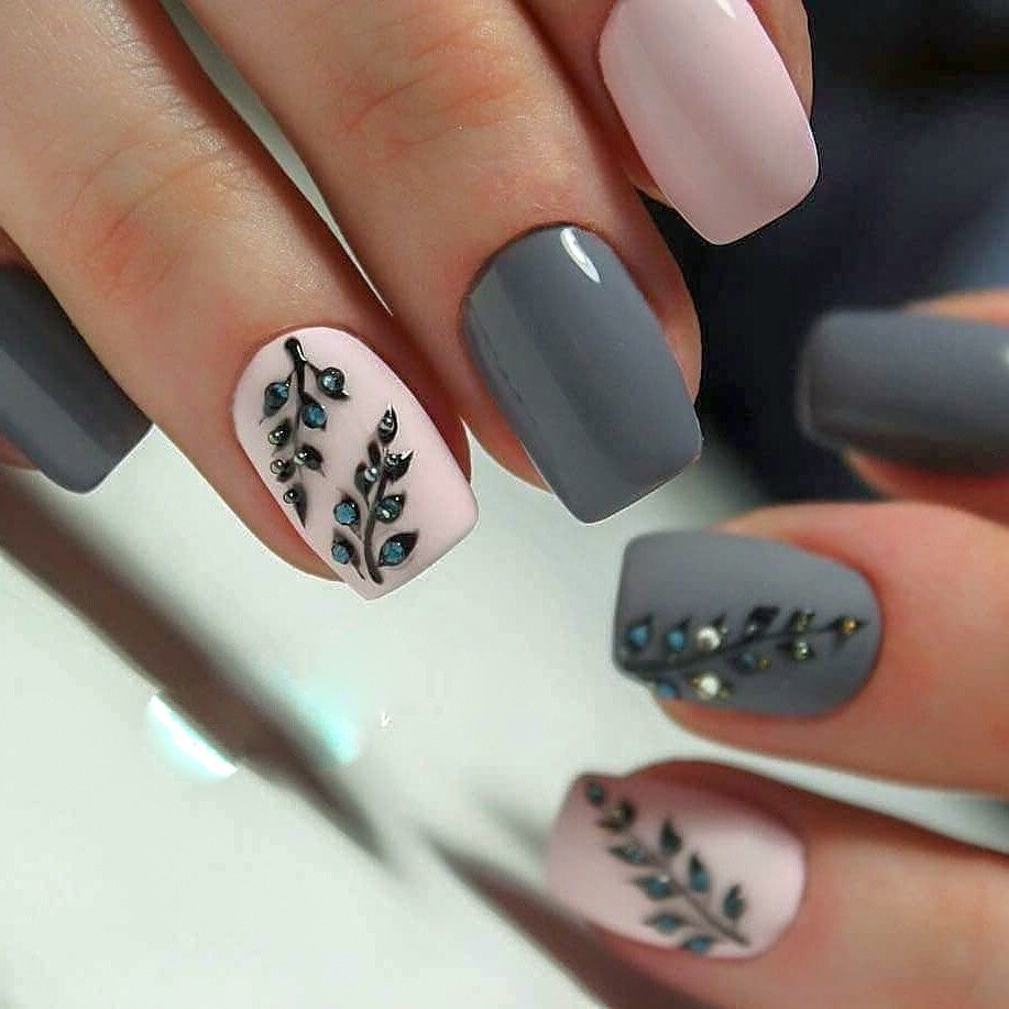Для рисунка можно выбрать веточки, пальмовые листья и аналогичные мотивы. Главное, чтобы маникюр был уместен. Например, на отдых можно сделать монстеру, весной выигрышно будут смотреться ветки сирени или изящного дерева.