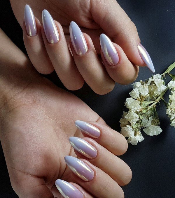 Это покрытие остается в тренде с тех пор, как девушки впервые увидели плотность втирки. Разноцветная пыль плотно ложится на ноготь. Ее оттенок зависит от того, какого цвета гель-лак использован под ней.