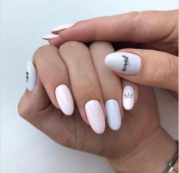 Еще один дизайн, который продолжает оставаться в тренде на протяжении нескольких сезонов, — надписи. Сейчас мастера редко наносят их от руки, в основном для создания рисунка используют специальные наклейки. Их нанесение сокращает время, потраченное на создание дизайна в разы.