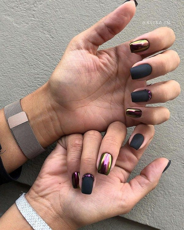 Существует несколько разновидностей втирки. Каждая имеет свой цвет и эффект. Одна создает радужные переливы, вторая придает ногтю металлический блеск. Некоторые девушки экспериментируют с матовым покрытием втирки. Это позволяет создать необычный и стильный дизайн ногтей.