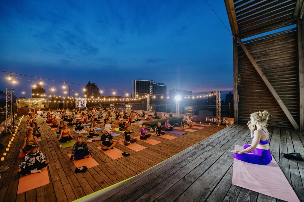 Помимо самой йога-сессии гости также могли полюбоваться панорамными видами на Киев, провести последние лучи солнца и угоститься полезными лимонадами.
